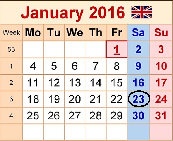 Jan 2016 Calendar_23 IELTS Published ເດືອນມັງກອນ 5, 2016 at 599 × 491 in ຫຼັກສູດກຽມເສັງ IELTS ສຳລັບ ປີ 2018